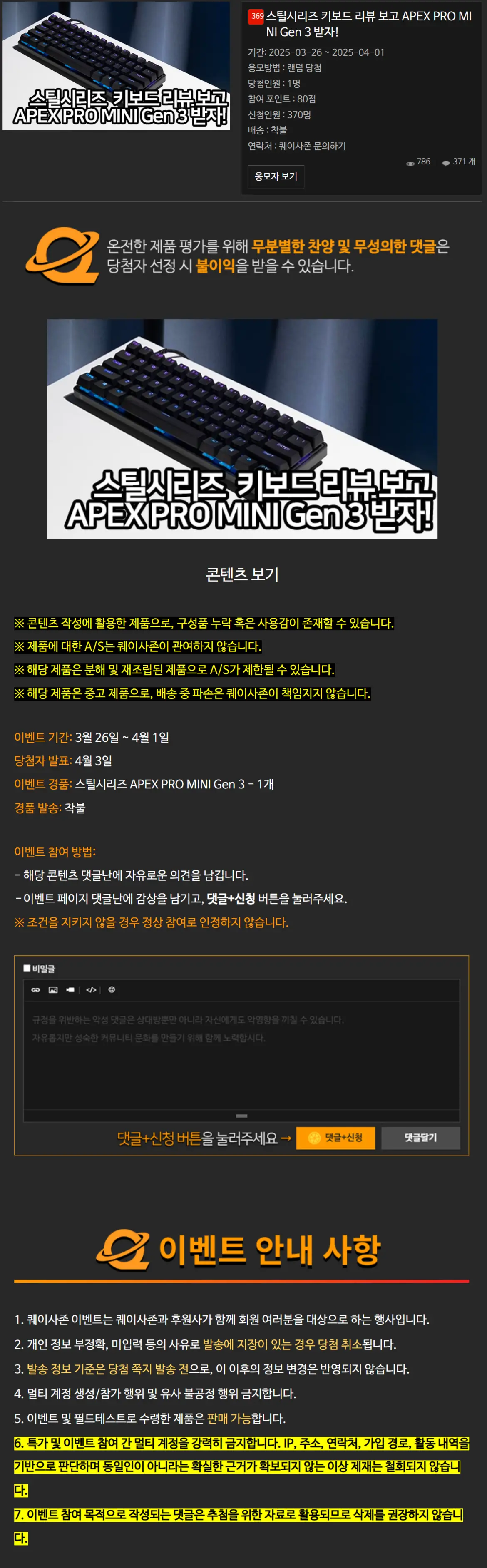 [퀘이사존] 스틸시리즈 키보드 리뷰 보고 APEX PRO MINI Gen 3 받자!