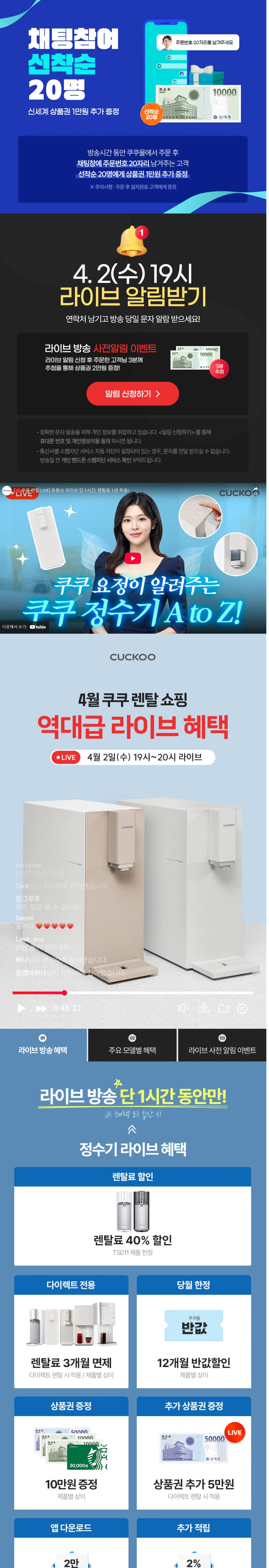 [쿠쿠] 유튜브 라이브 단 1시간, 렌탈료 1년 무료!