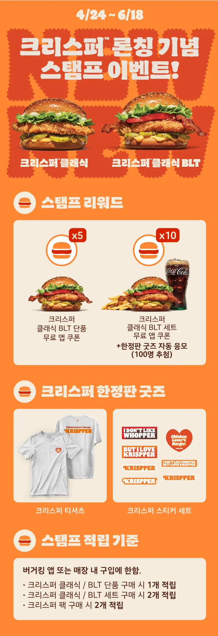 5개 적립 - 크리스퍼 클래식 BLT 단품 무료 쿠폰