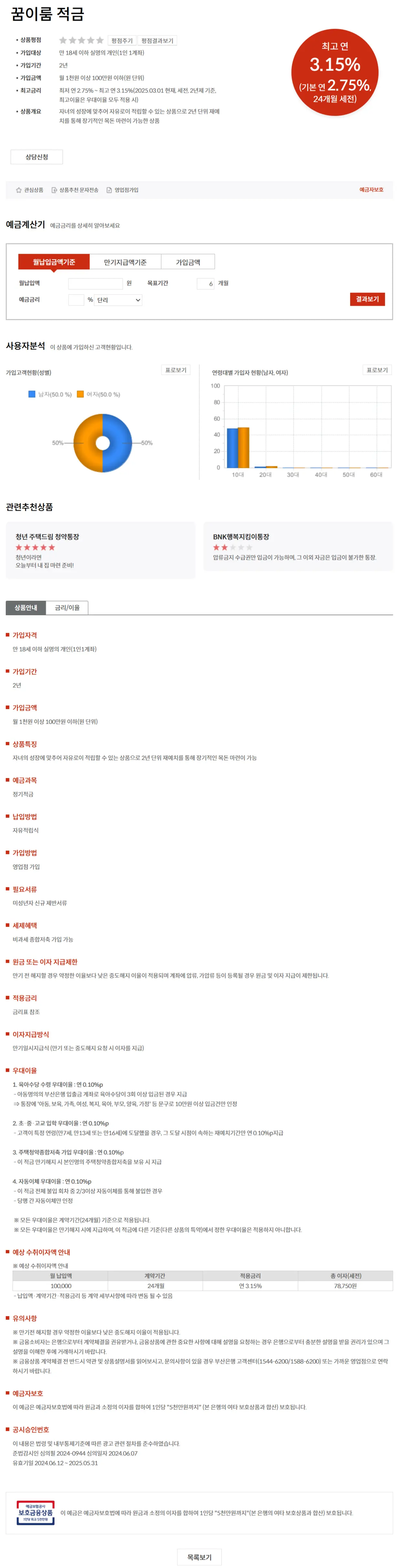 [BNK부산은행] 꿈이룸 적금(최저 연 2.75% ~ 최고 연 3.15%)