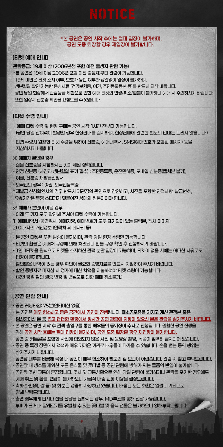 * 단 3/11~3/13 공연은 19시 30분, 21시 공연만 진행됩니다.
