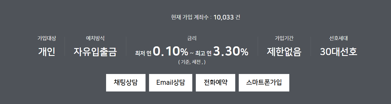 최대 3.30%(일별 잔액 100만원 이하 금액에 적용하며, 기본금리 포함 최종적용 금리기준)
