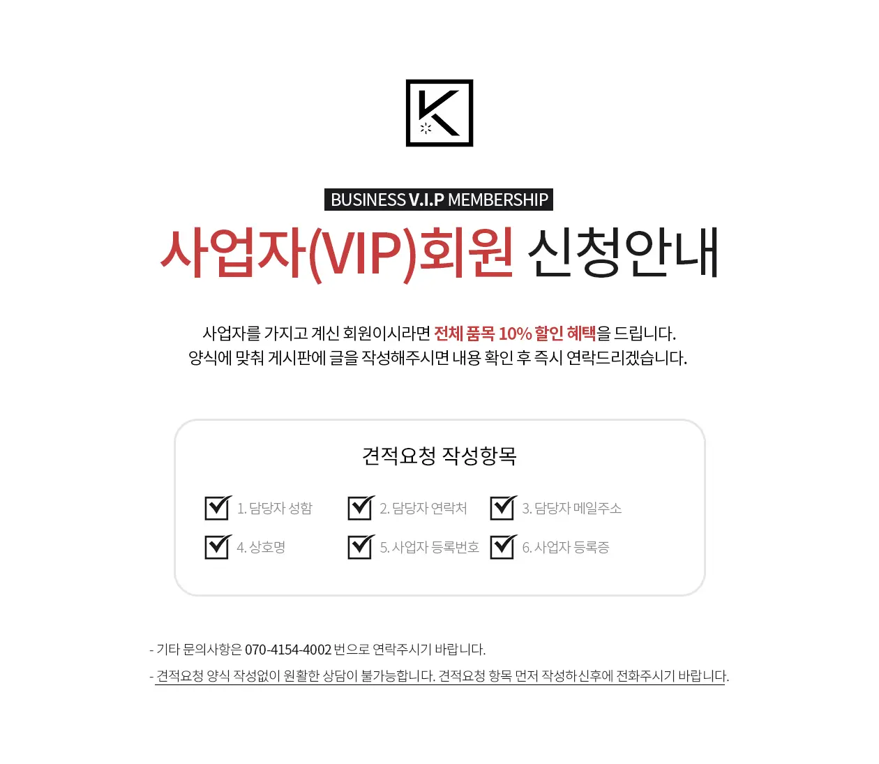 사업자(VIP)회원신청 및 대량구매 문의 게시판입니다.