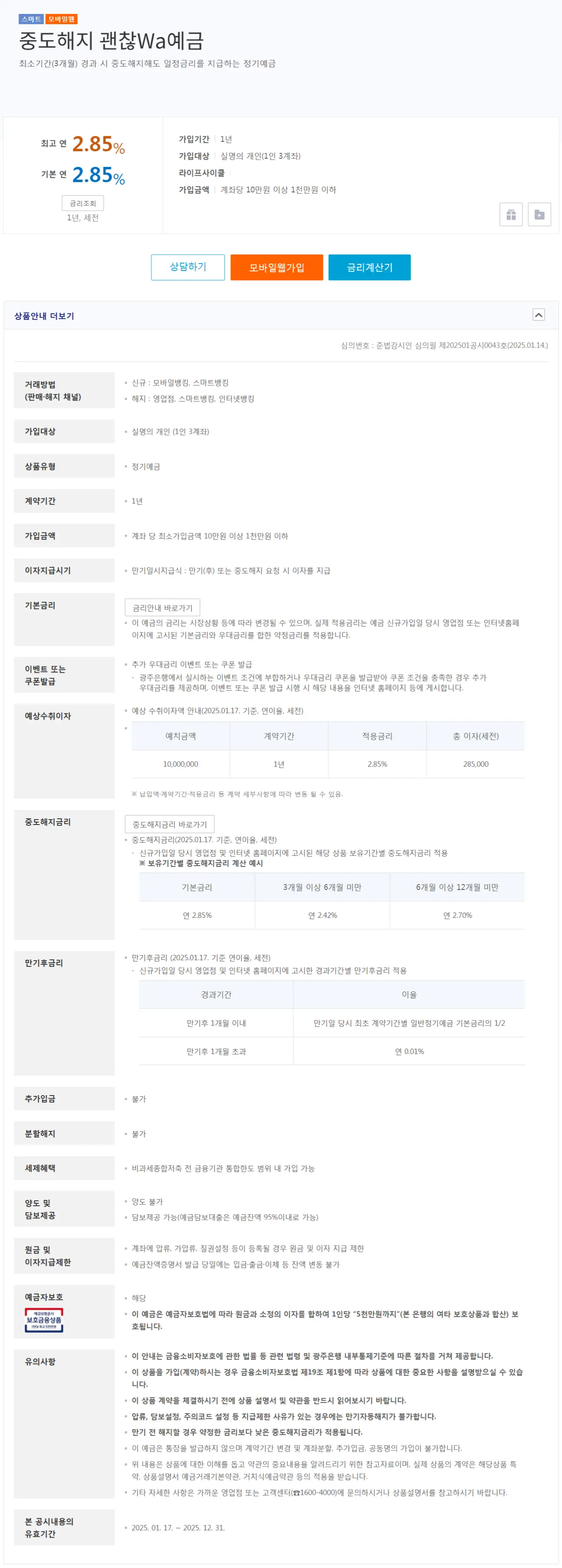 [광주은행] 중도해지 괜찮Wa예금