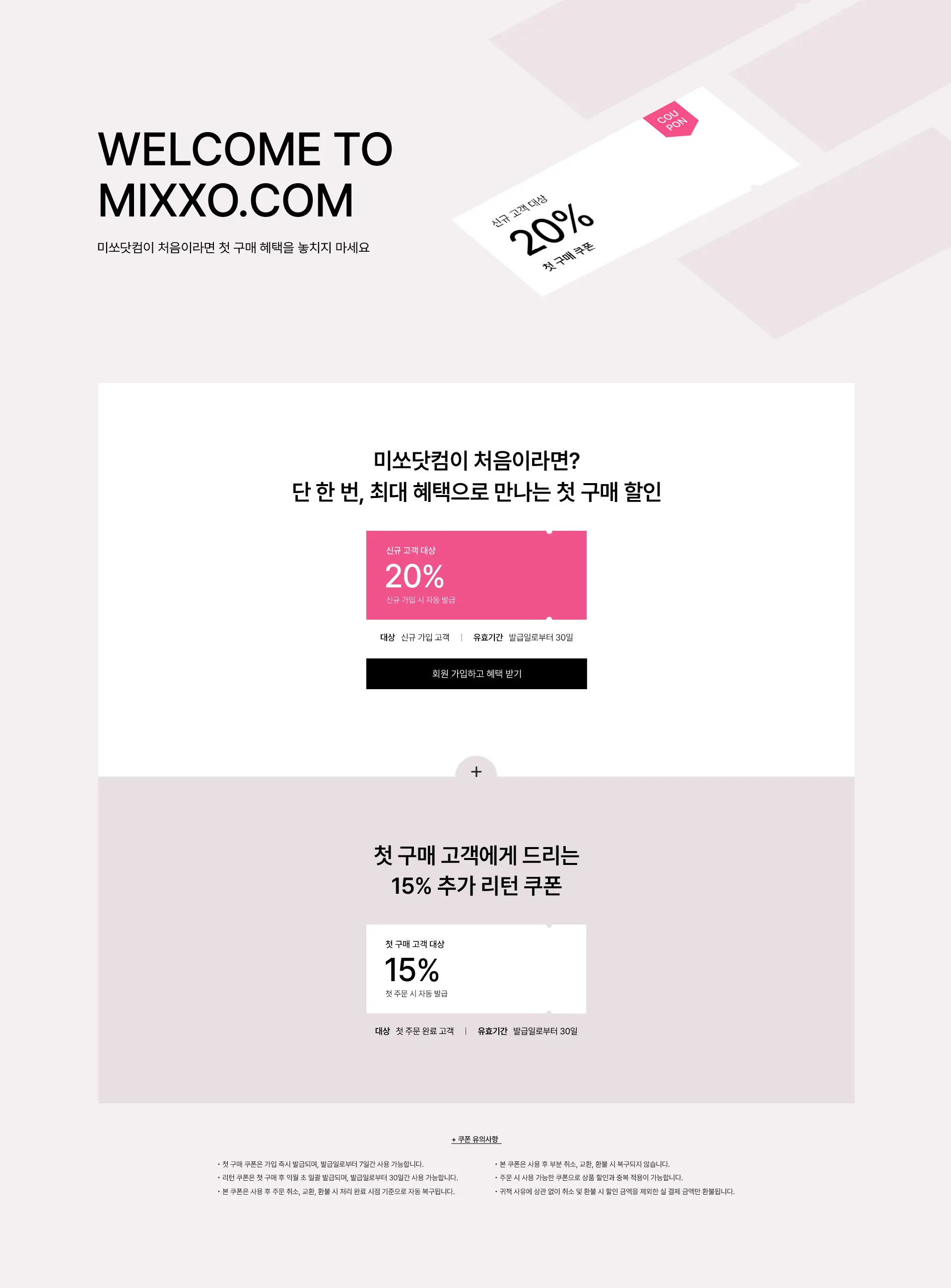 [미쏘] 신규회원 20% 쿠폰 혜택